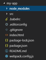 - webpack.config.js: Es nuestro archivo de configuración para webpack.