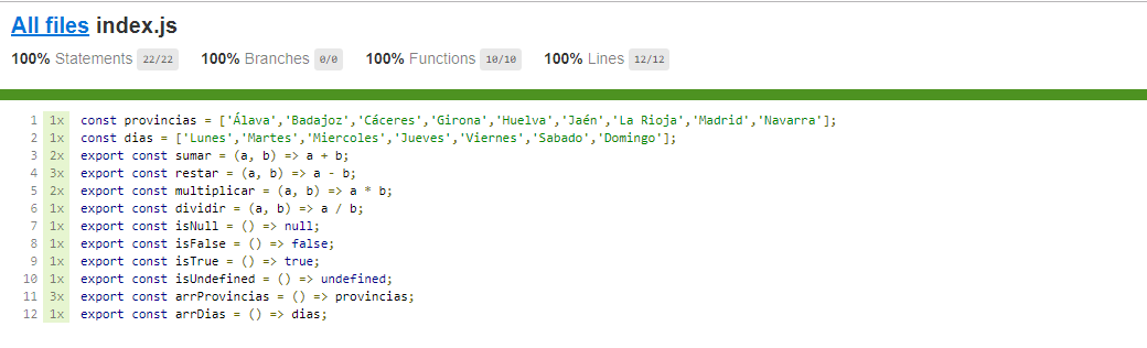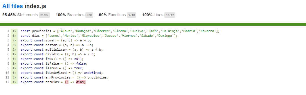 Como podemos observar, en el nuevo informe nos damos cuenta que nunca hicimos el test para la función arrDias.